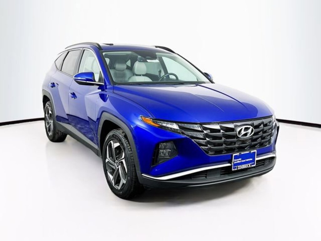 Certified. Intense Blue 2023 Hyundai Tucson SEL AWD 8-Speed Automatic with SHIFTRONIC 2.5L I4 DGI DOHC 16V LEV3-ULEV70 187hp LOCAL TRADE, ONE OWNER, CLEAN CAR FAX, Apple CarPlay & Android Auto, Auto-Dimming Interior Mirror w/Homelink, Convenience Package, Heated front seats, Option Group 02, Power Sunroof, Radio: AM/FM/HD/SiriusXM Audio System, Remote keyless entry, Tow Hitch.