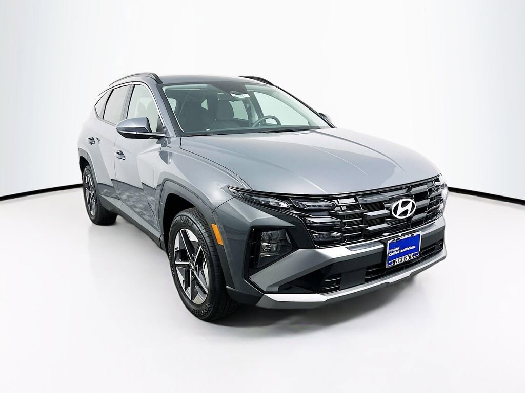 Certified. Ecotronic Gray 2025 Hyundai Tucson SEL AWD 8-Speed Automatic with SHIFTRONIC 2.5L I4 DGI DOHC 16V LEV3-SULEV30 187hp LOCAL TRADE, LOW MILES, ONE OWNER, CLEAN CAR FAX, APPLE CARPLAY, ANDROID AUTO.